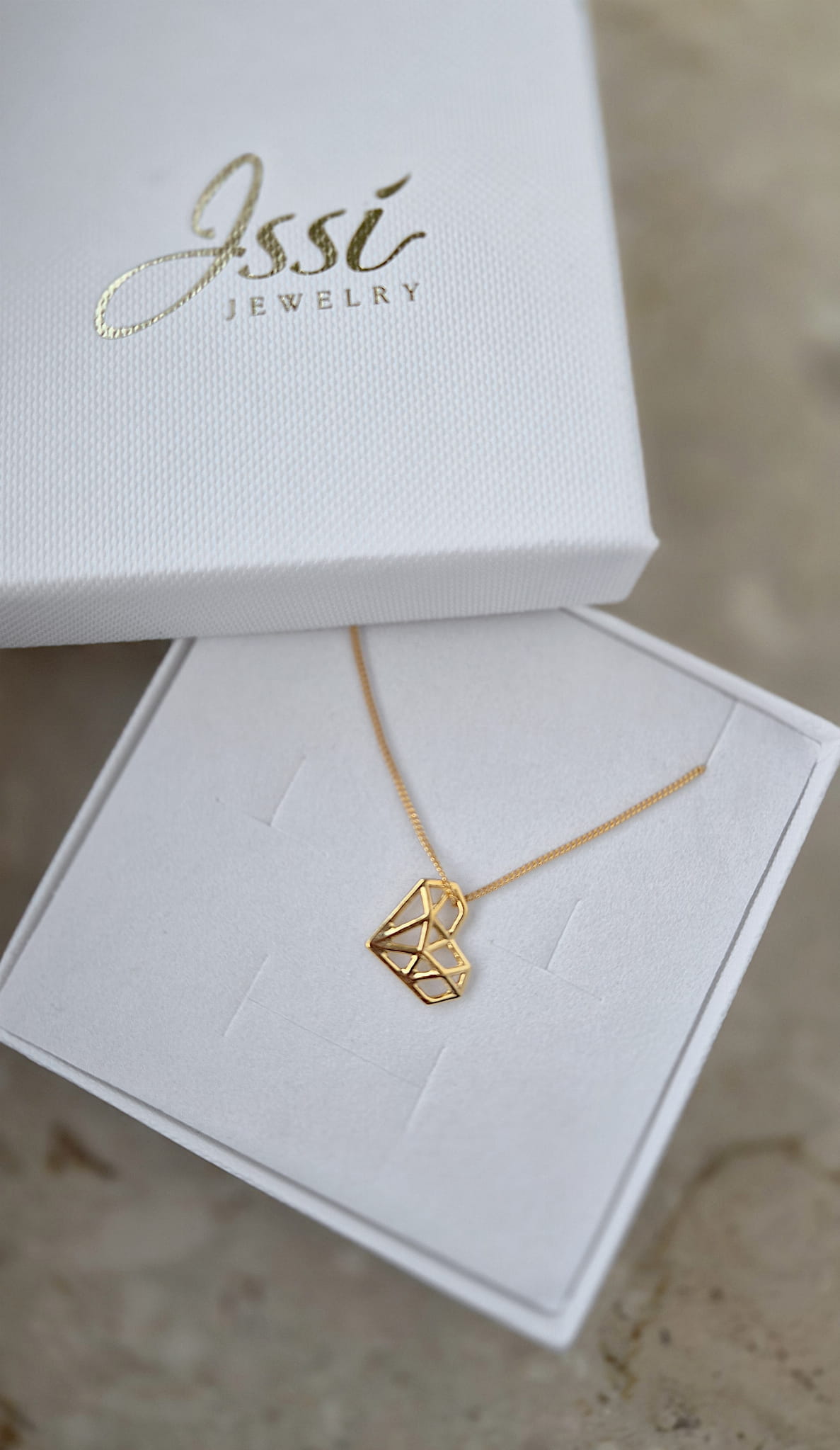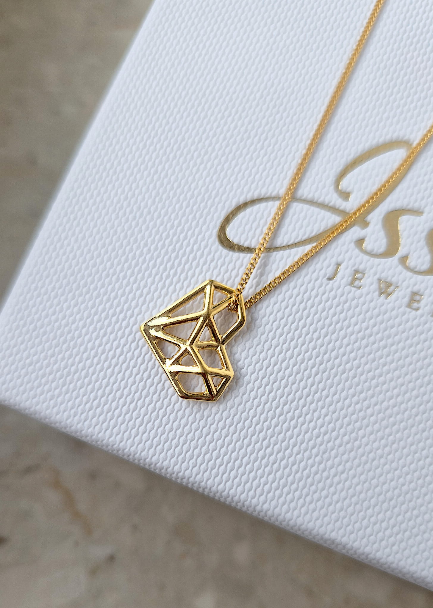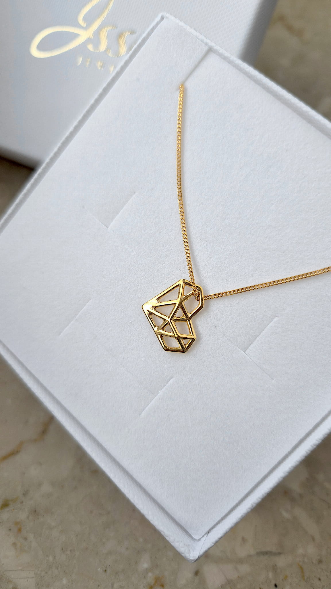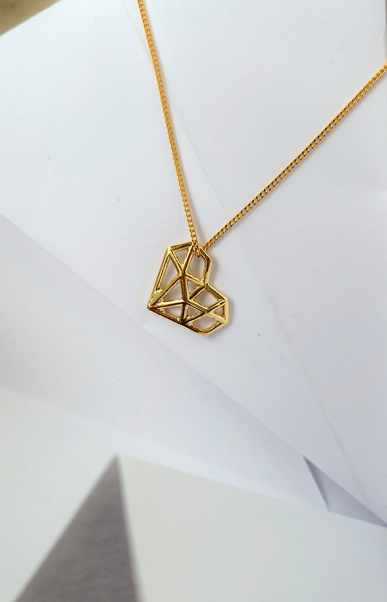 Naszyjnik z geometryczną zawieszką w kształcie serca.