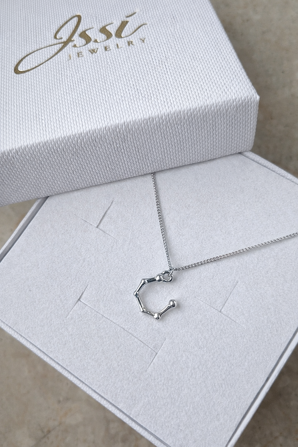 Naszyjnik został wykonany ze srebra próby 925. Dostępny jest również w wersji pokrytej 24-karatowym złotem oraz 18-karatowym różowym złotem.