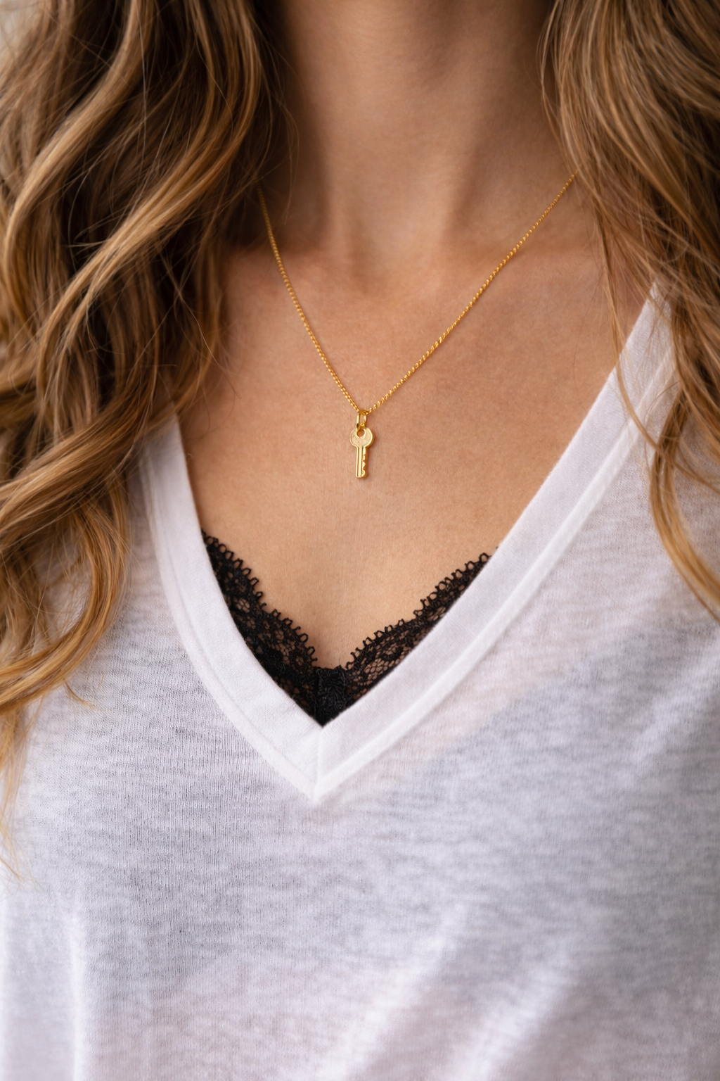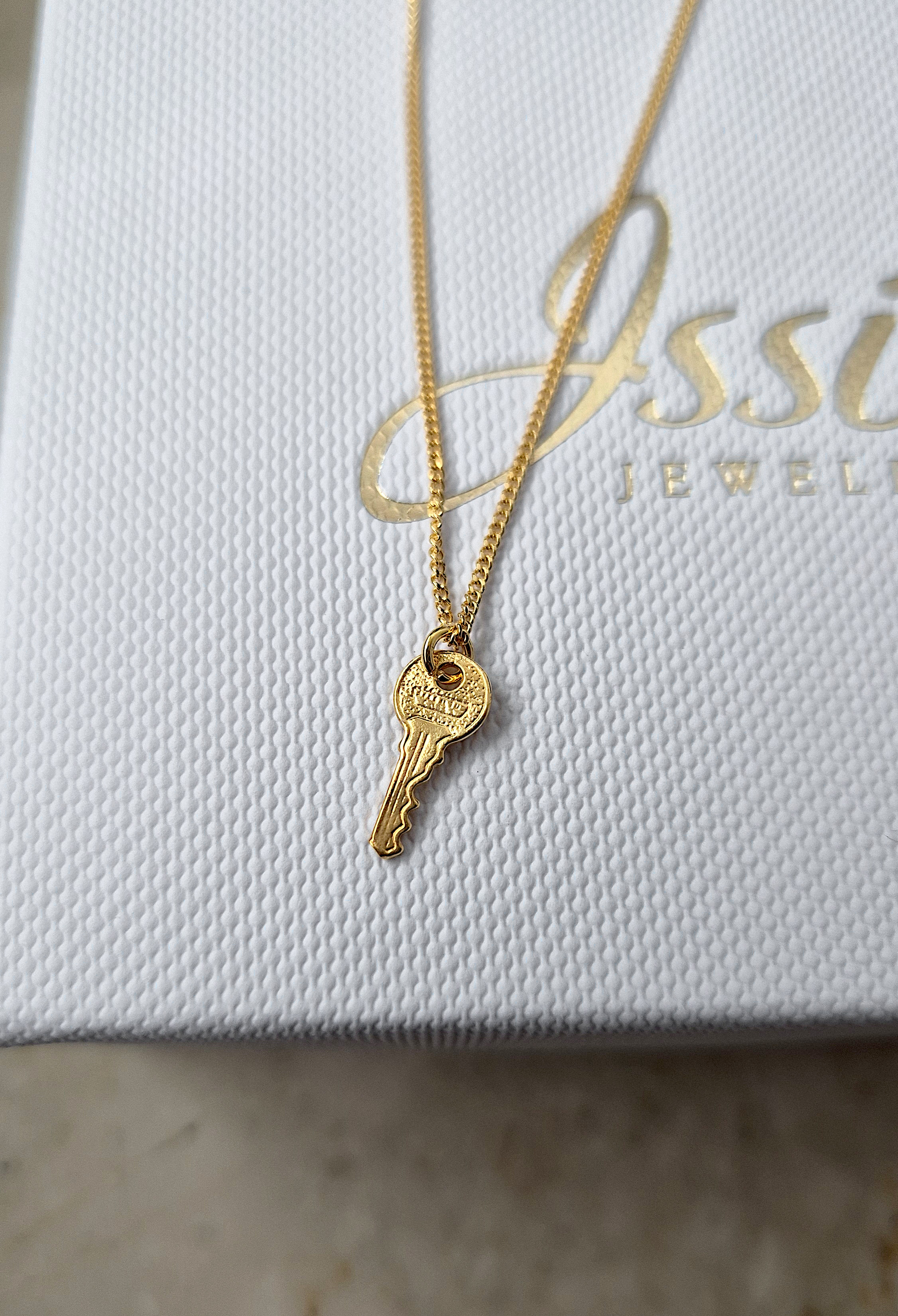 Naszyjnik z kluczykiem wykonany ze srebra próby 925, srebra pokrytego dwoma warstwami 24K złota lub 18K różowego złota.