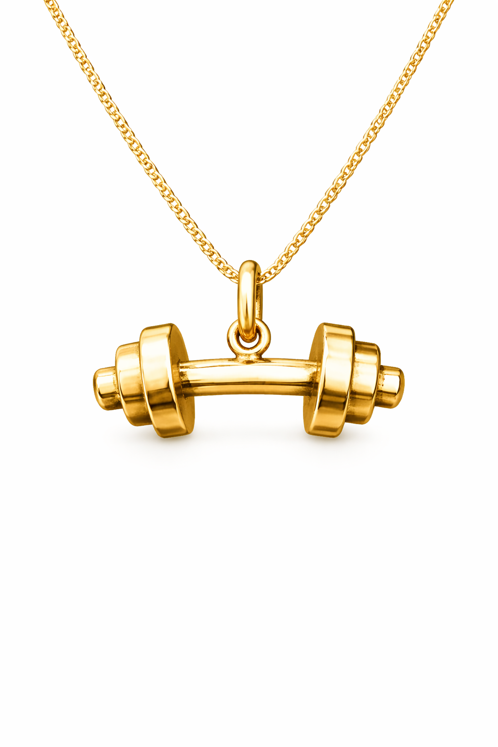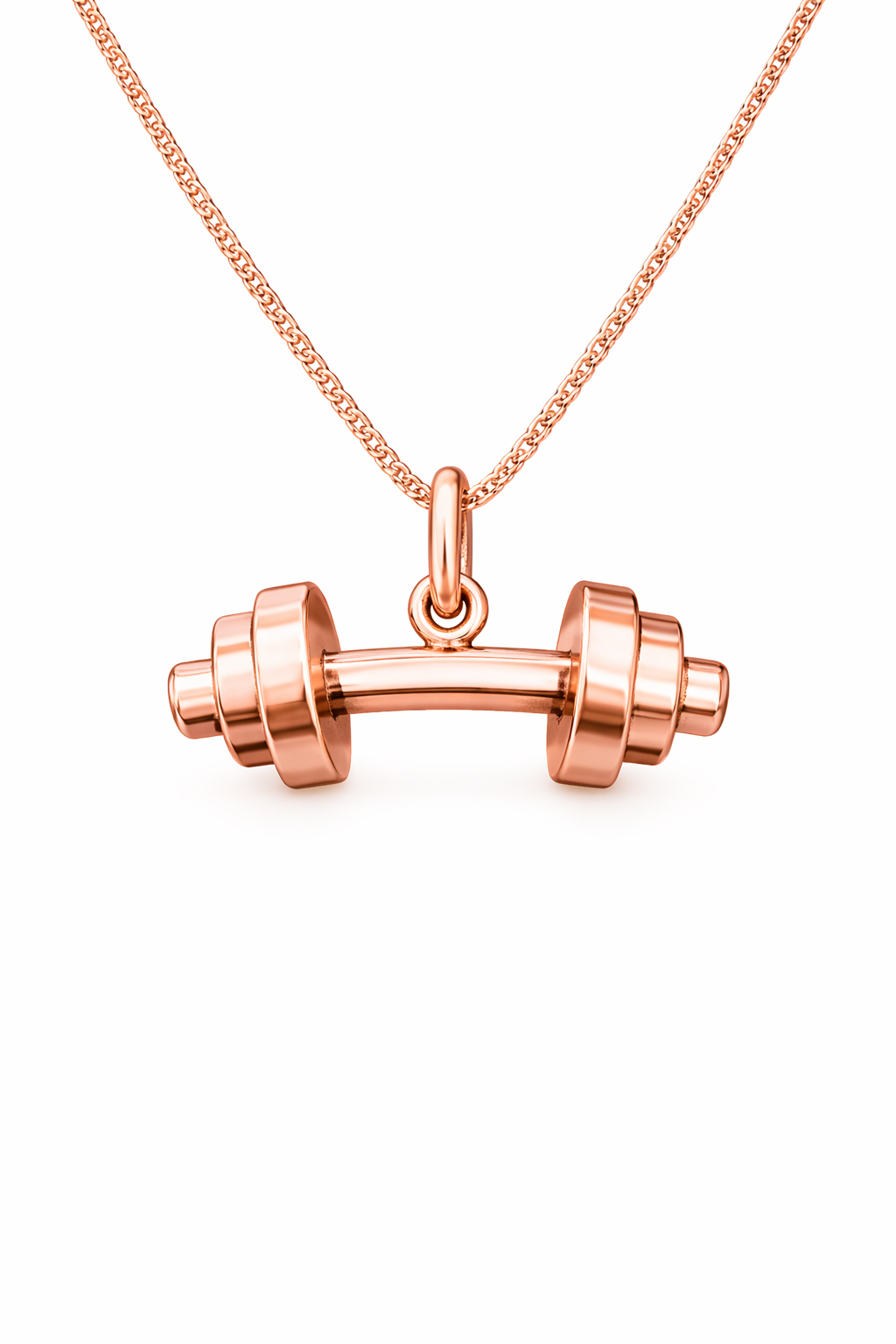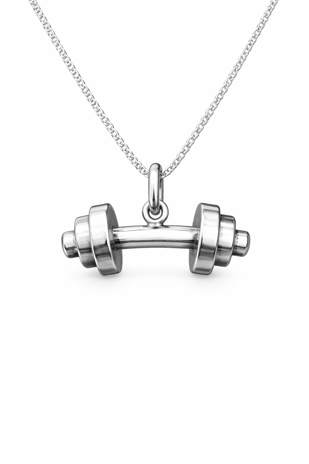 Zawieszka w kształcie sztangi została wykonana z dbałością o proporcje i detale, dzięki czemu wiernie oddaje formę prawdziwego sprzętu treningowego — w eleganckim, biżuteryjnym wydaniu.